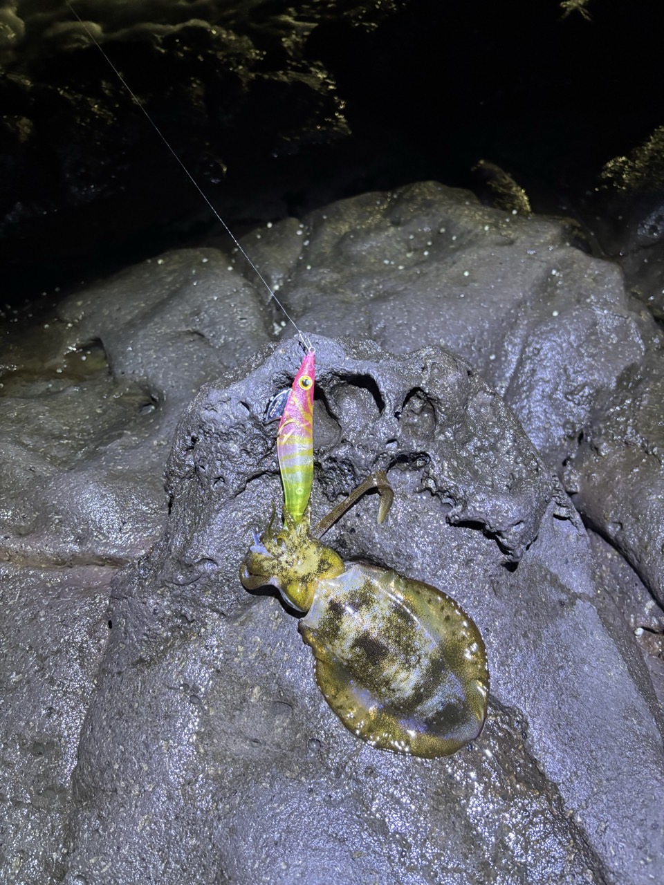 ※새벽늦은 시각에 출조하여 한두마리(감자,고구마) 잡으면 좋겠다~라고 생각했는데 평소에 방생을 좀 많이 해주어서 그런지 용왕님께서 무시급 사이즈 무늬오징어 손맛을 안겨주었네요~^^ 감솨! 감솨!! 감솨!!!