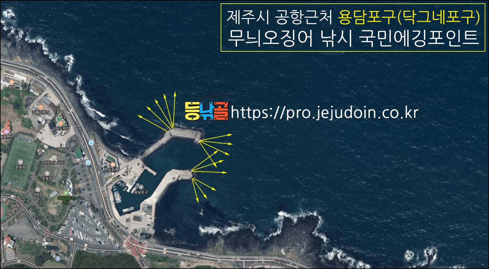 제주시 공항부근 용담포구 큰방파제&작은포구 무늬오징어 낚시 에깅포인트 표기입니다.