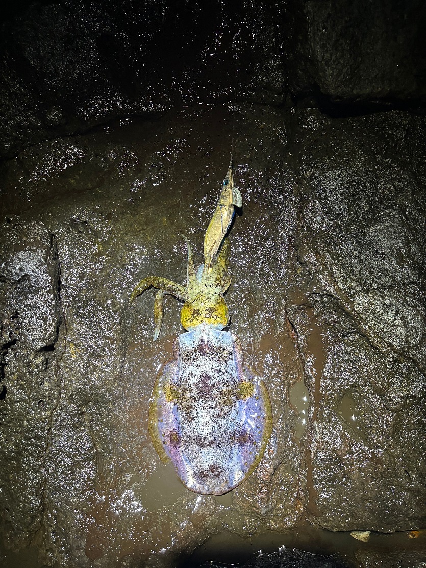 ■8월 12일 화요일 새벽 제주시 갯바위 무늬오징어 낚시 조황(무시급 사이즈, 1마리는 방생함)